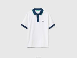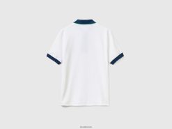 hvit Benetton menn kortermet polo med sammenstøtende kant 20TRB4577