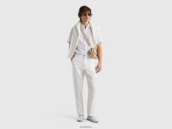 hvit Benetton menn Kortermet skjorte i 100 % lin 20TRB4555