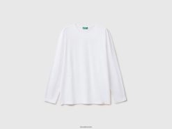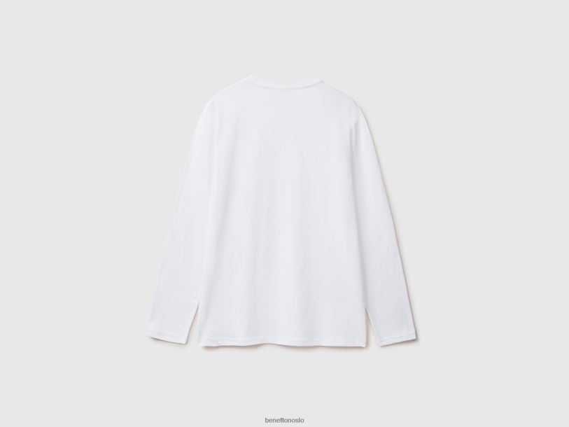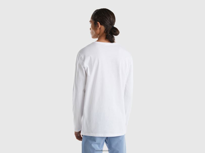 hvit Benetton menn langermet t-skjorte i ren bomull 20TRB1282