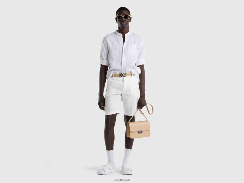 hvit Benetton menn linkort med mandarinkrage 20TRB1364
