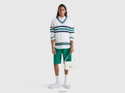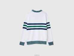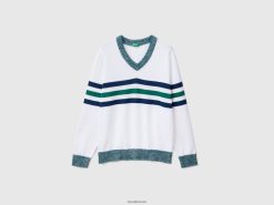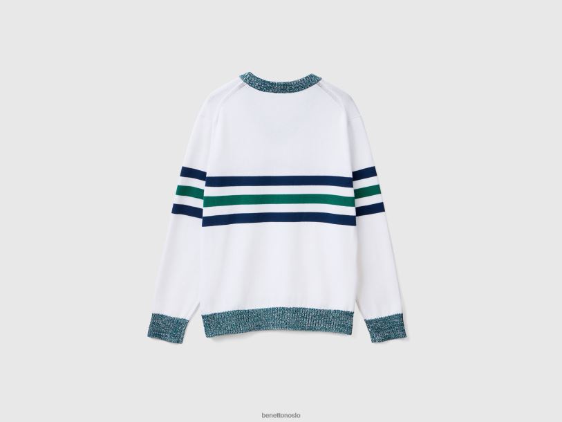 hvit Benetton menn stripet genser i 100 % bomull 20TRB4390