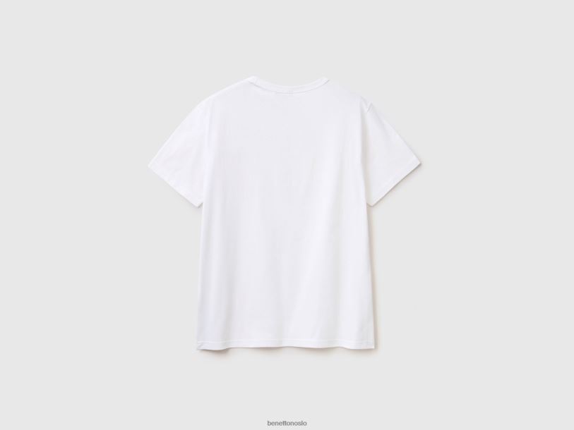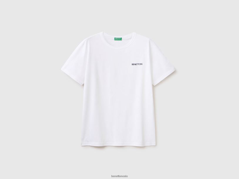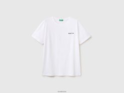 hvit Benetton menn t-skjorte i økologisk bomull med logotrykk 20TRB4496