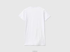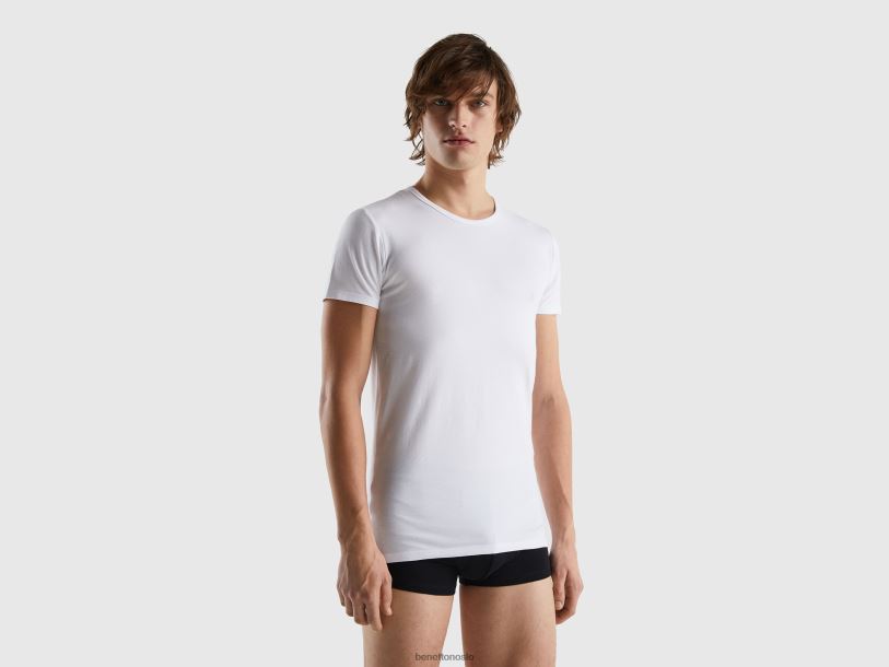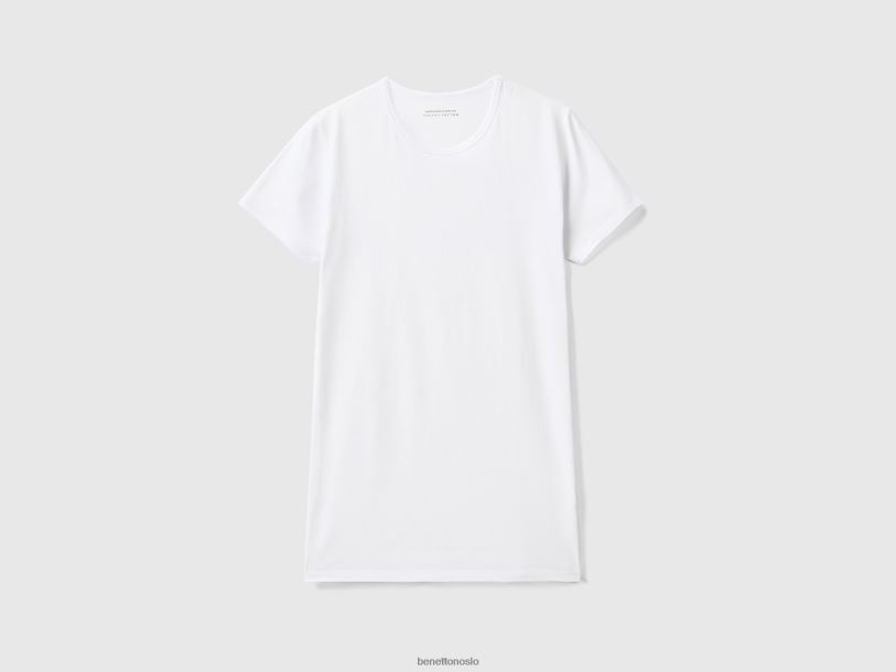 hvit Benetton menn t-skjorte i økologisk stretchbomull 20TRB1571