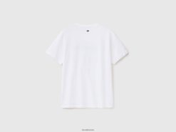 hvit Benetton menn t-skjorte med brodert slagord 20TRB4463