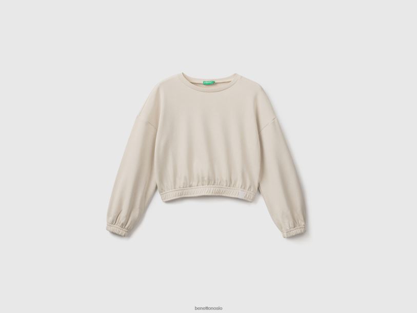 kremhvit Benetton barn cropped sweatshirt i resirkulert stoff 20TRB5358