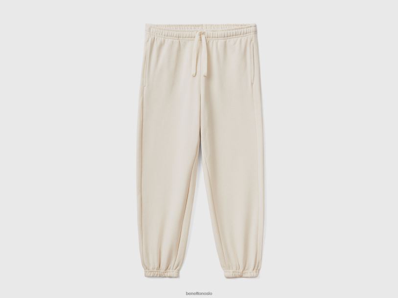 kremhvit Benetton barn joggebukse i resirkulert stoff med snøring 20TRB2711