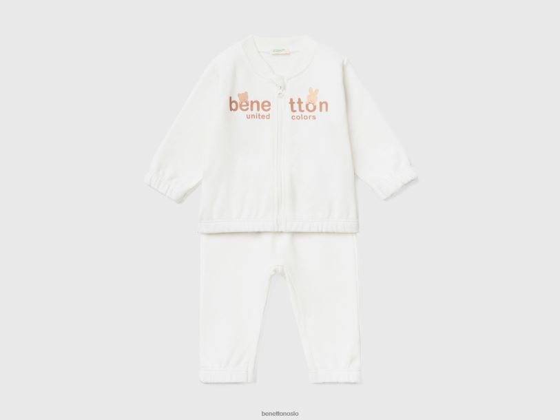 kremhvit Benetton barn svette sportsantrekk 20TRB5763