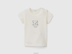 kremhvit Benetton barn t-skjorte med lapp og trykk 20TRB5848
