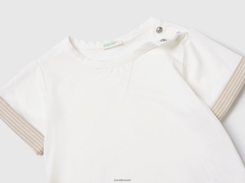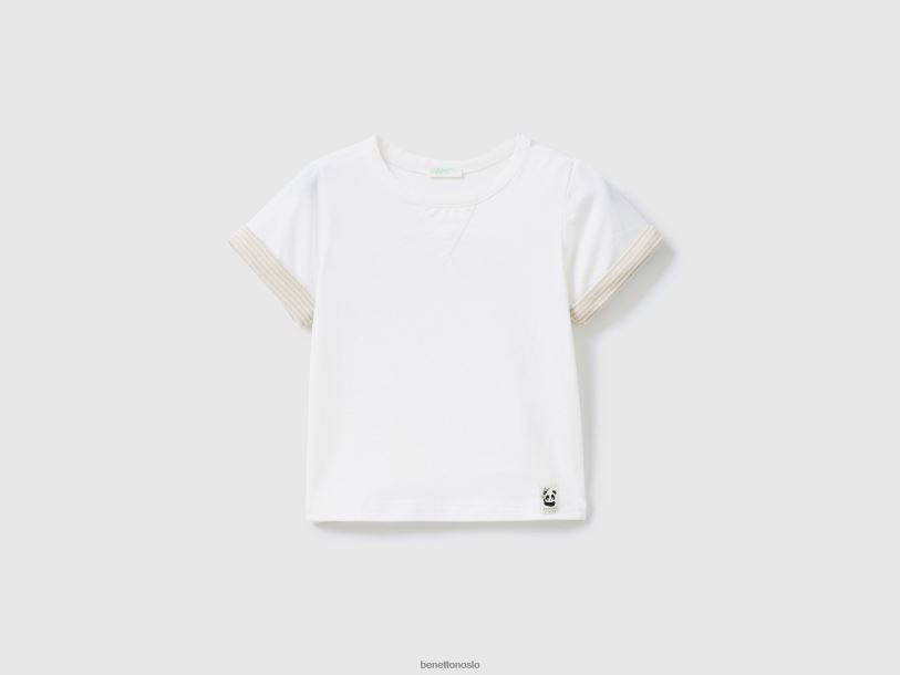 kremhvit Benetton barn t-skjorte med stripete jakkeslag 20TRB5817