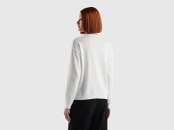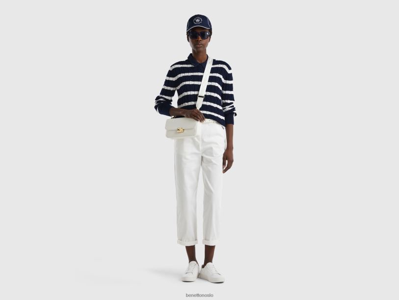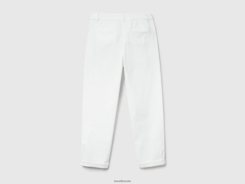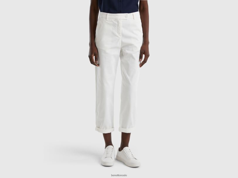 kremhvit Benetton kvinner chinobukser i stretch i bomull 20TRB605