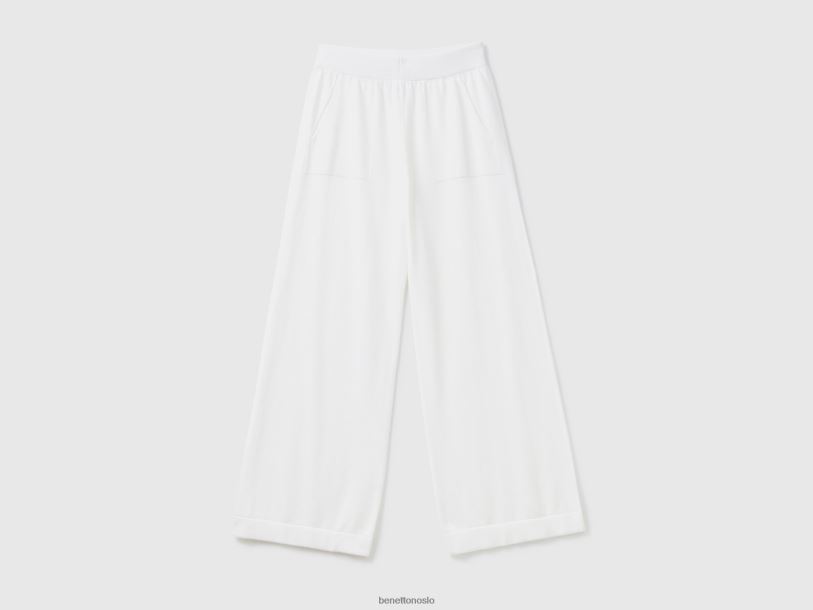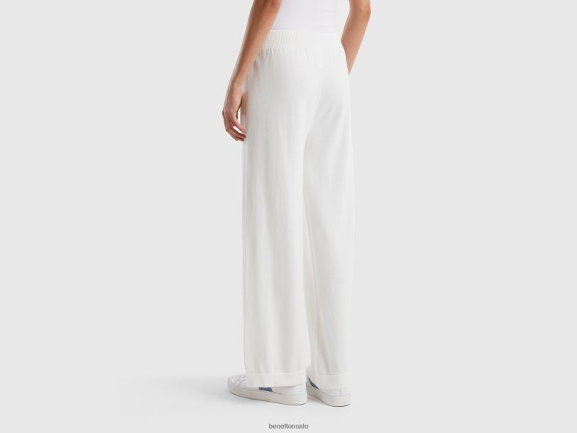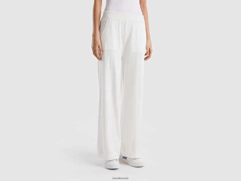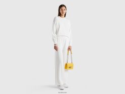 kremhvit Benetton kvinner strikke vide bukser 20TRB4093