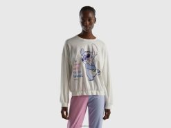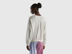 kremhvit Benetton kvinner sy topp i varm bomull 20TRB963