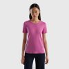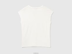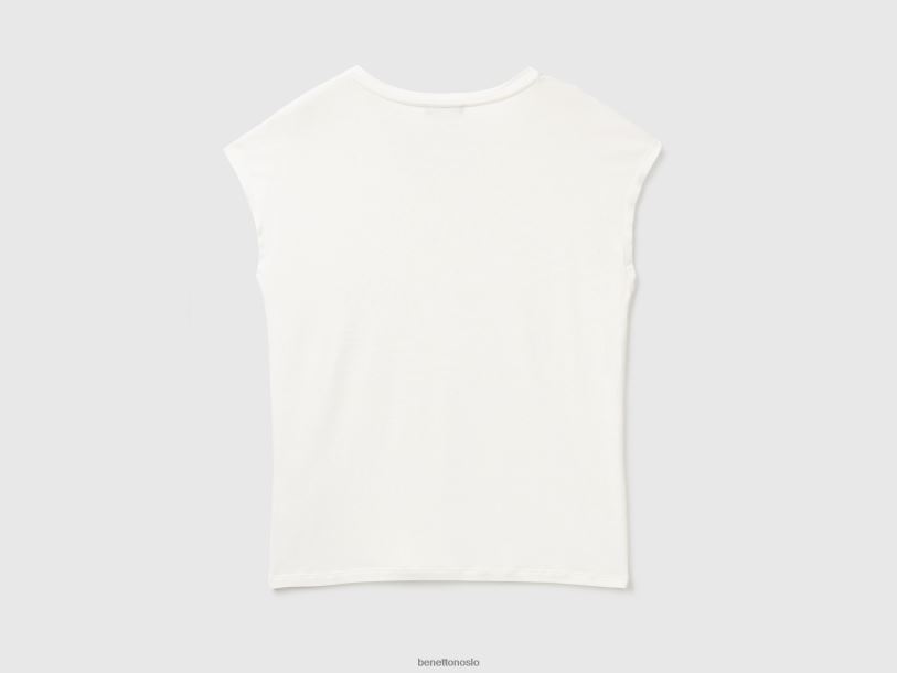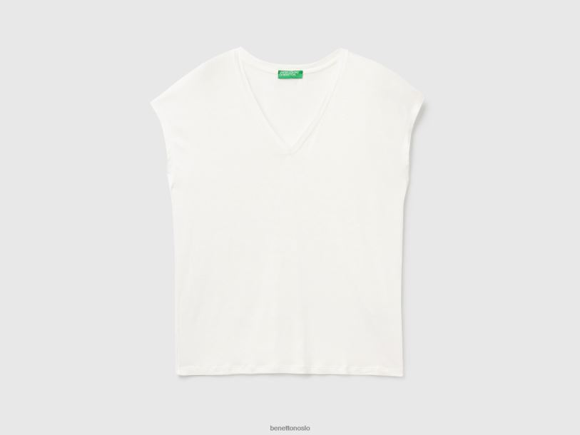 kremhvit Benetton kvinner t-skjorte i bærekraftig stretch viskose 20TRB390