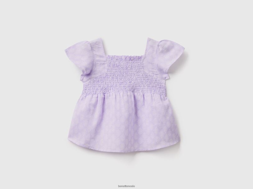 lavendel Benetton barn mønstret bluse i linblanding 20TRB2500