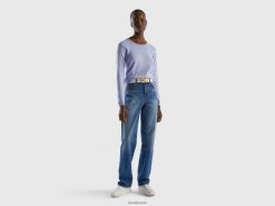 lavendel Benetton kvinner genser med rund hals i ren bomull 20TRB3508