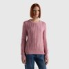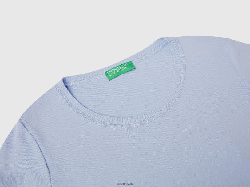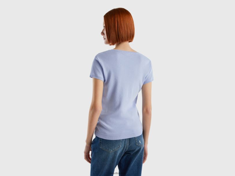 lavendel Benetton kvinner kortermet genser i 100 % bomull 20TRB3553