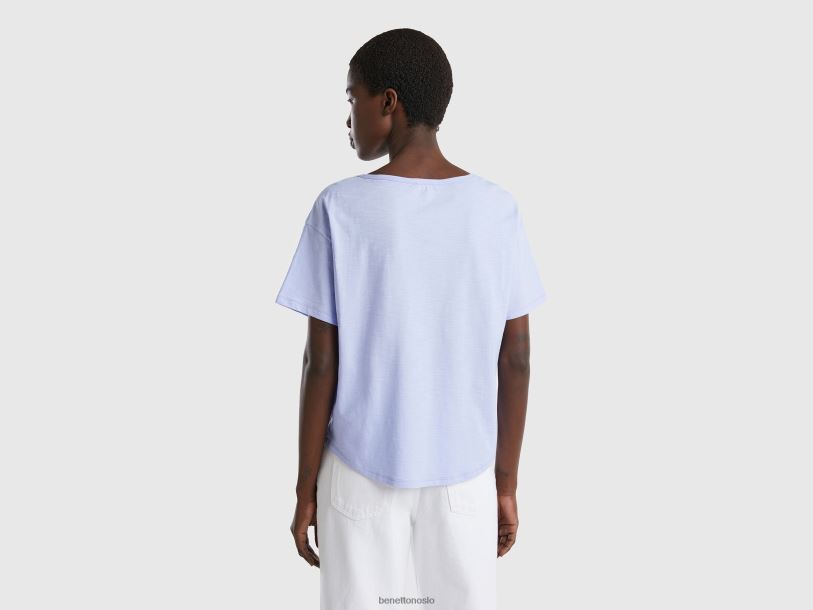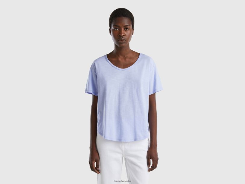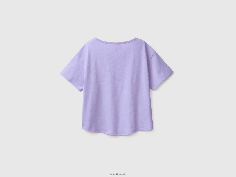 lavendel Benetton kvinner kortermet t-skjorte i lett bomull 20TRB415