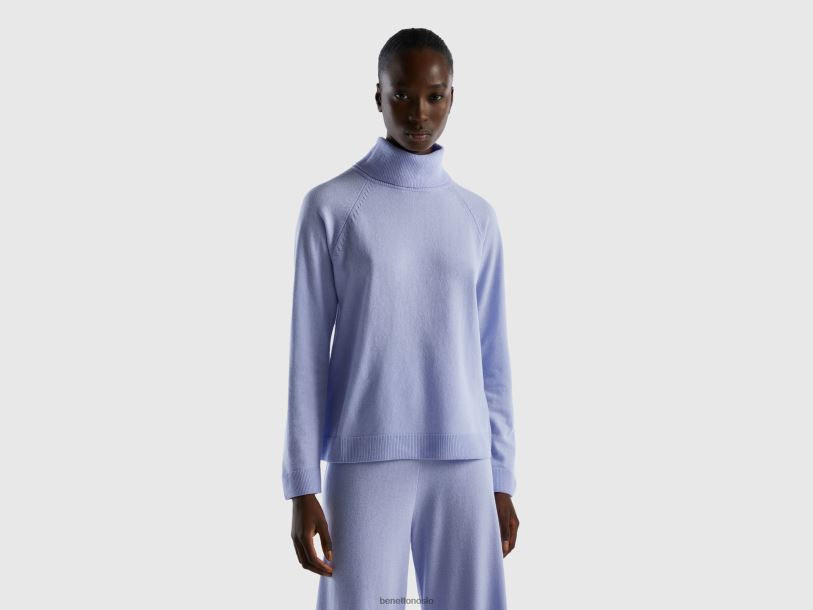 lavendel Benetton kvinner lyseblå turtleneck i ull- og kashmirblanding 20TRB116