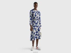 luftvåpen blå Benetton kvinner flytende blomsterkjole 20TRB4026