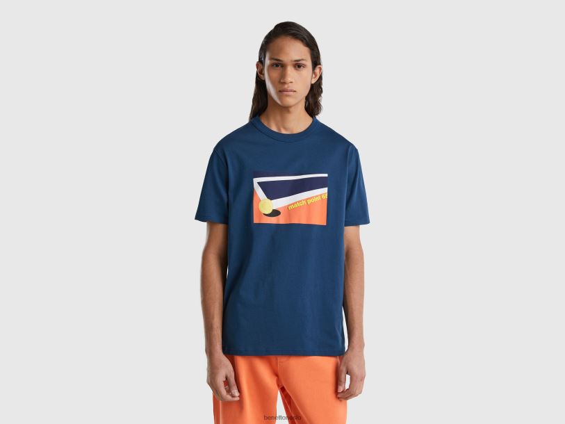 luftvåpen blå Benetton menn T-skjorte med rund hals og trykk 20TRB4460