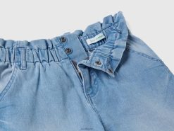 lyse blå Benetton barn baggy fit jeans med rynket midje 20TRB5431