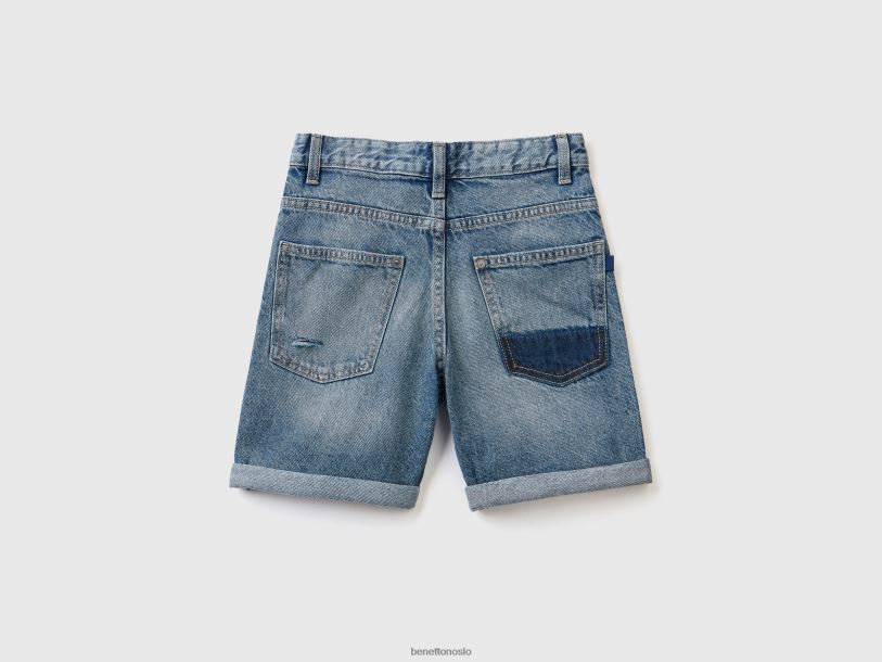 lyse blå Benetton barn denim bermudaer med rifter 20TRB4964