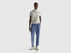lyse blå Benetton kvinner chinos i fløyel med stretch i midjen 20TRB641