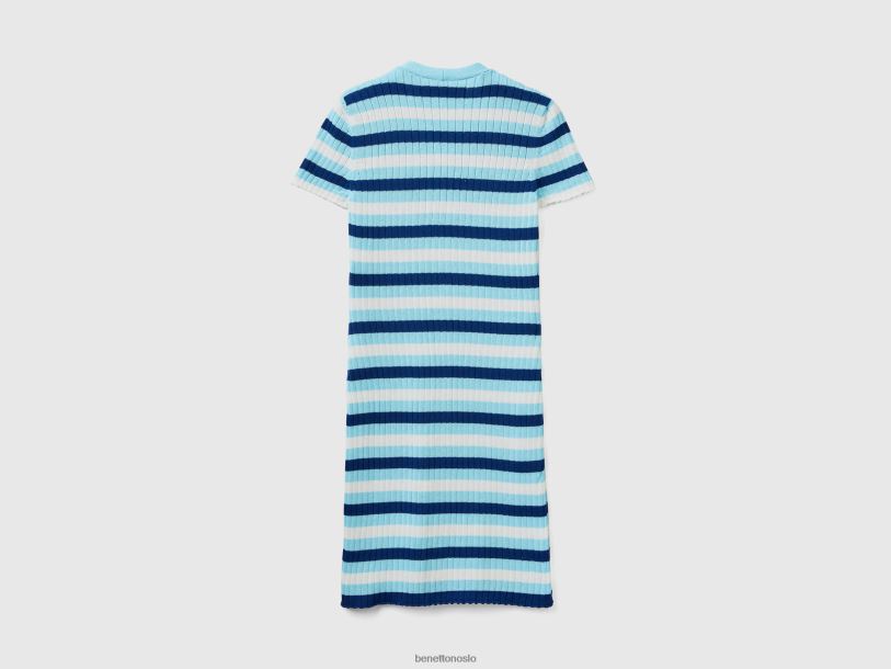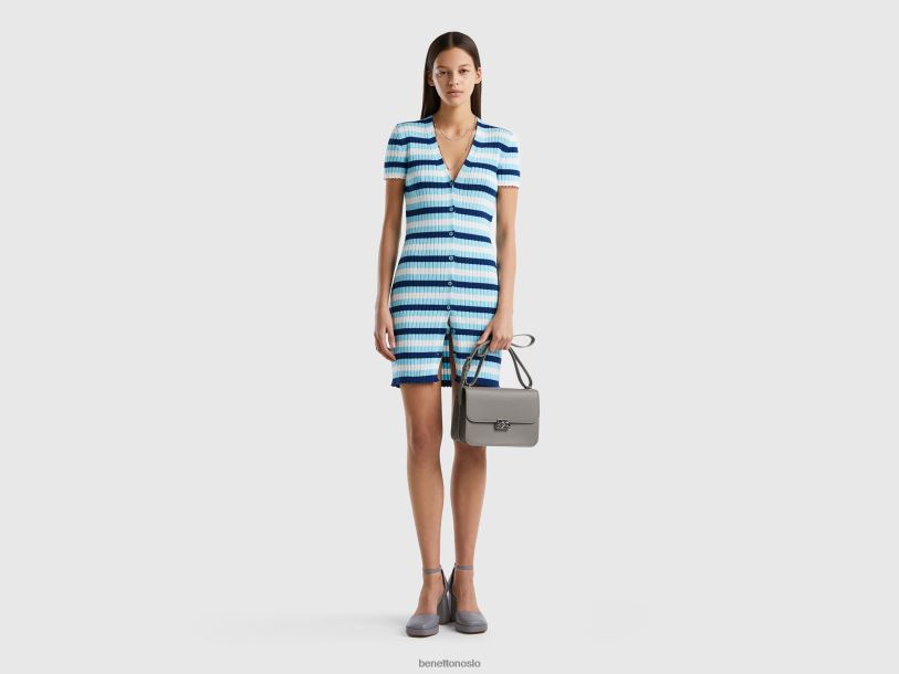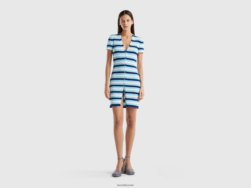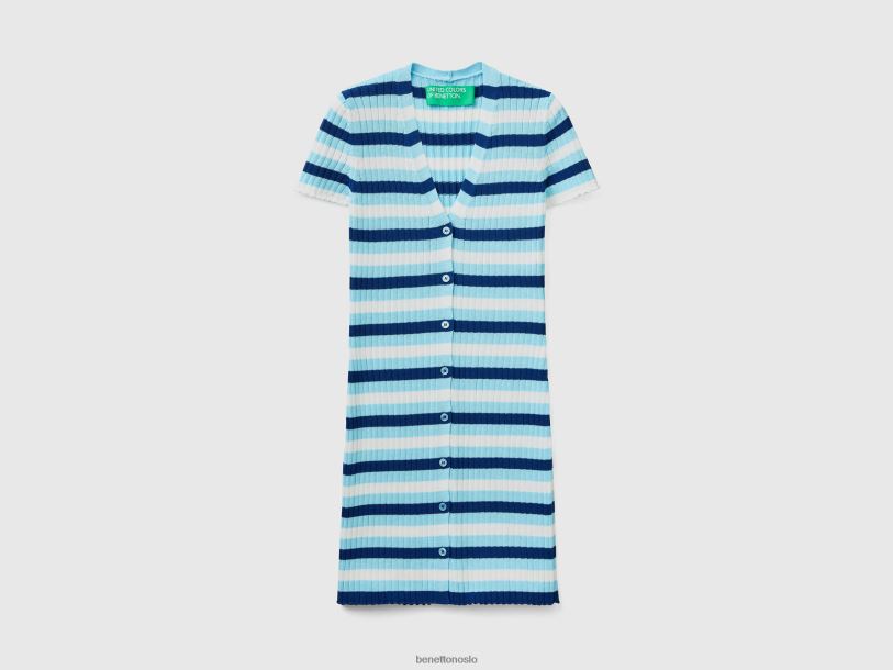 lyse blå Benetton kvinner kort stripet kjole med knapper 20TRB4011