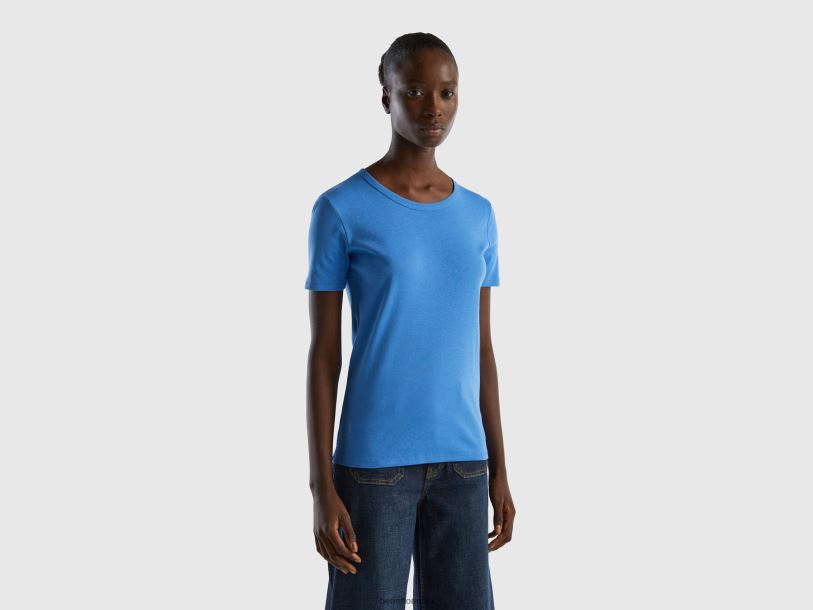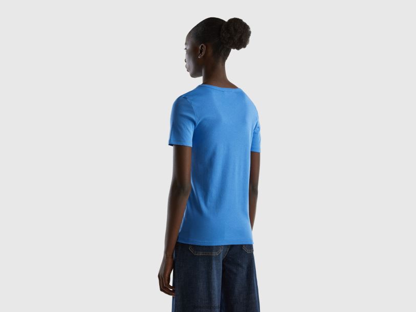 lyse blå Benetton kvinner langfiber t-skjorte i bomull 20TRB3853