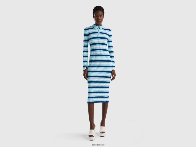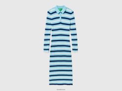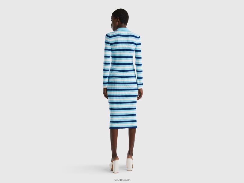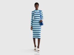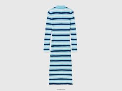 lyse blå Benetton kvinner stripet midikjole 20TRB4027