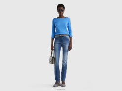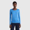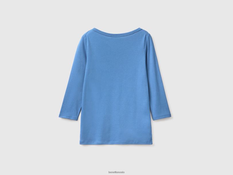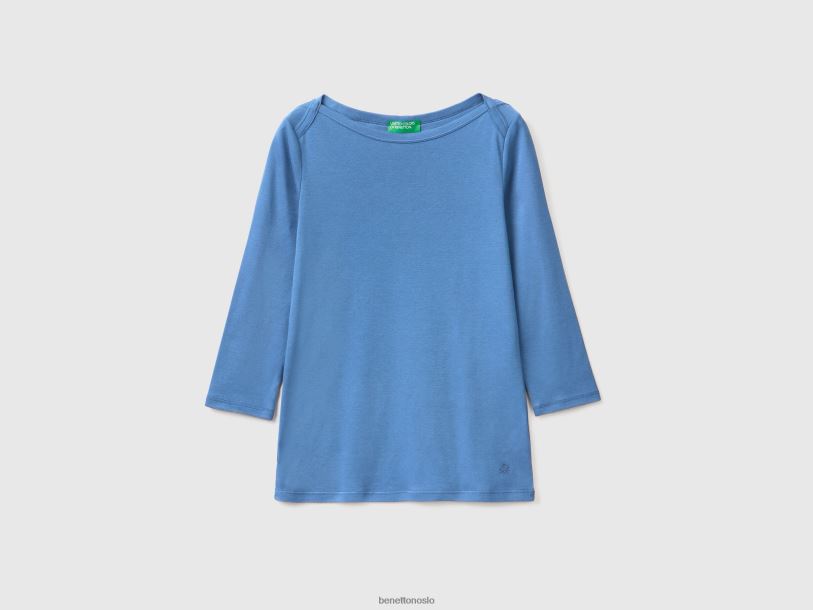 lyse blå Benetton kvinner t-skjorte med båthals i 100 % bomull 20TRB368
