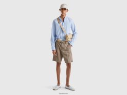 lyse blå Benetton menn 100 % stripet skjorte i bomull 20TRB4539