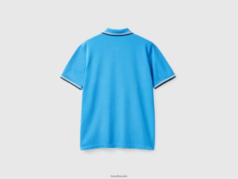 lyse blå Benetton menn kortermet stretch bomullspolo 20TRB1388