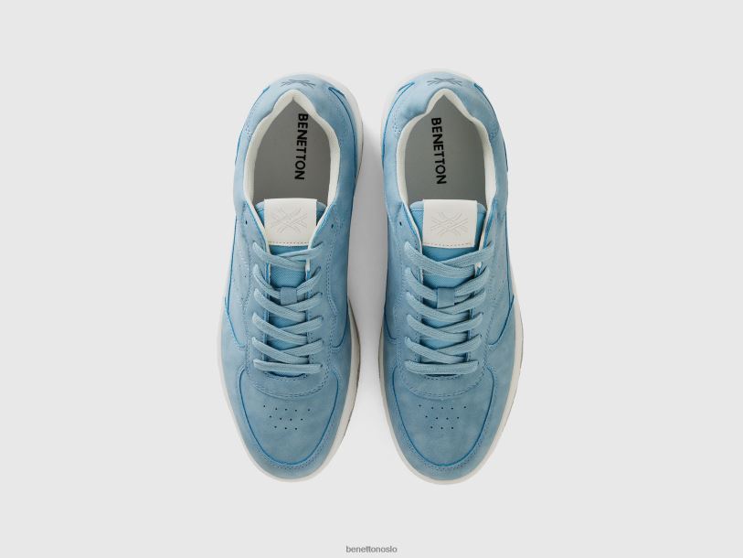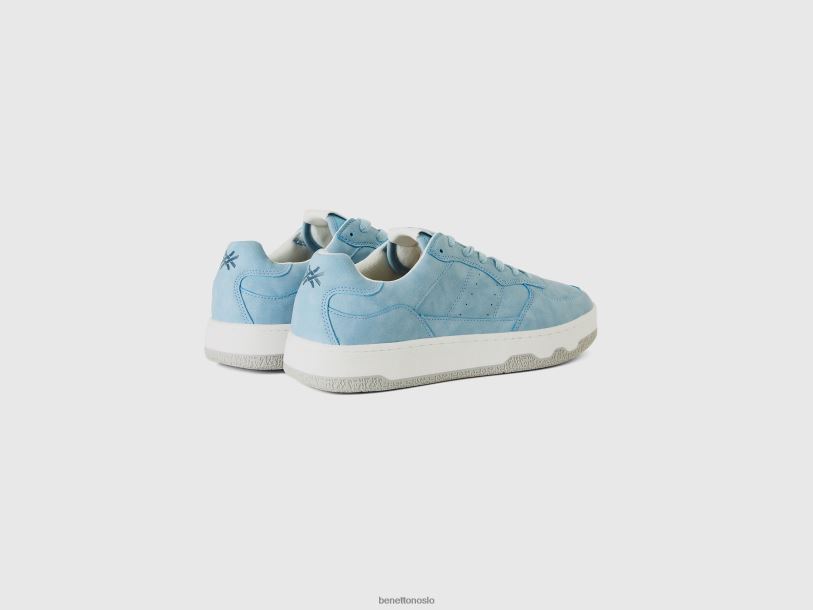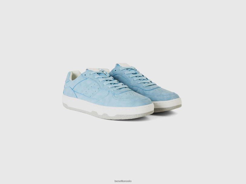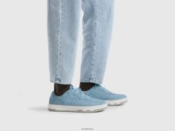 lyse blå Benetton kvinner t-skjorte med båthals i 100 % bomull 20TRB368