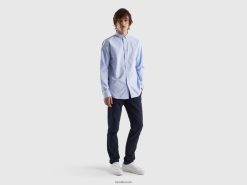 lyse blå Benetton menn slim fit skjorte i 100 % bomull 20TRB1365