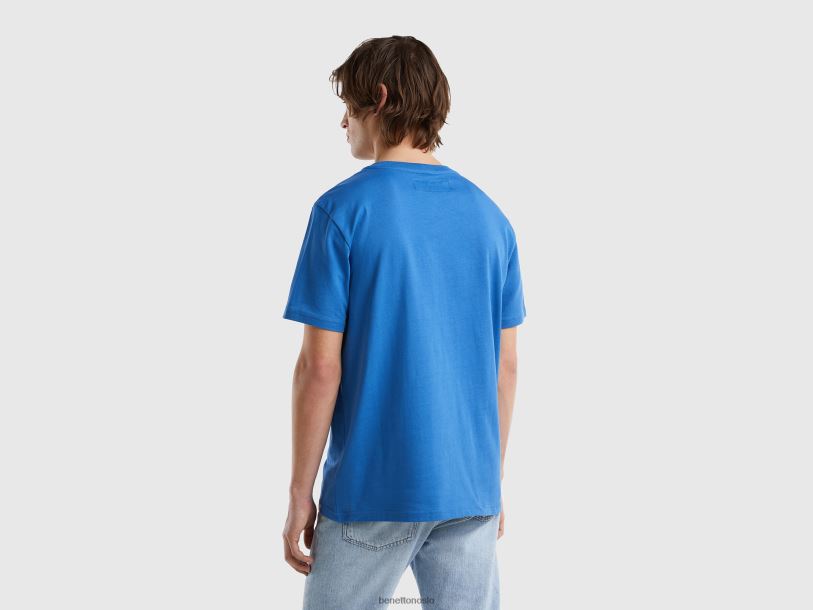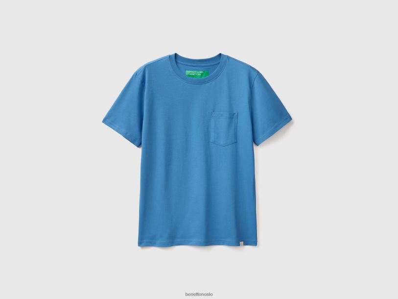 lyse blå Benetton menn T-skjorte i 100 % bomull med lomme 20TRB1254