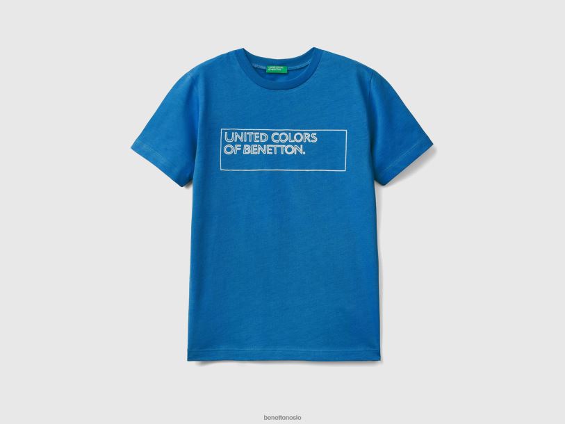 lyseblå Benetton barn T-skjorte i 100 % bomull med logo 20TRB4823