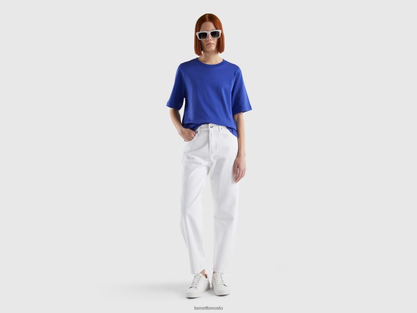 lyseblå Benetton kvinner 100% bomull t-skjorte i boxy fit 20TRB3850