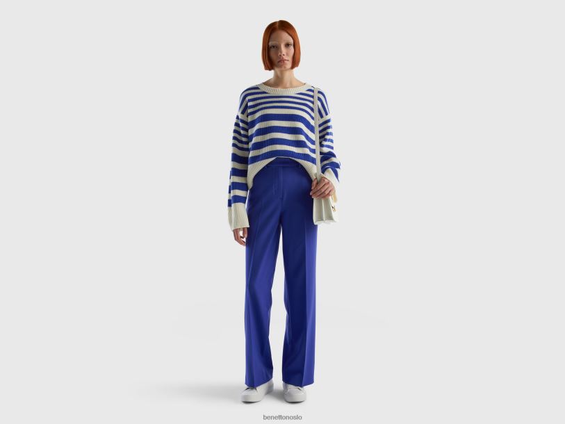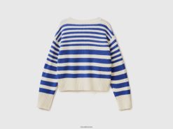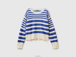 lyseblå Benetton kvinner stripete genser i ullblanding 20TRB20