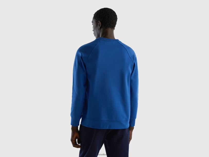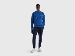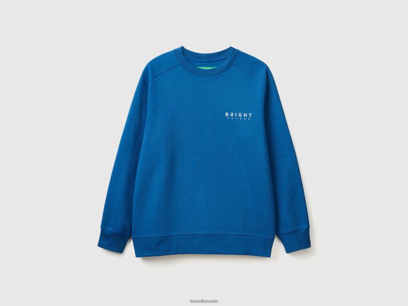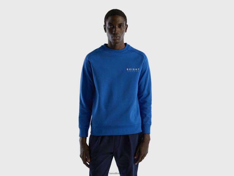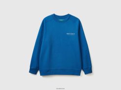 lyseblå Benetton menn hettegenser med trykk i bomullsblanding 20TRB1316