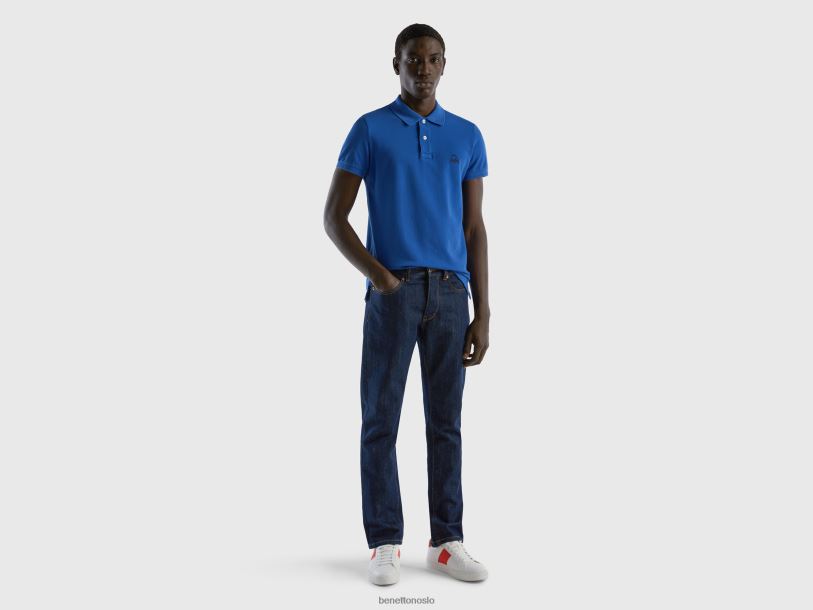 lyseblå Benetton menn kornblomst blå slim fit polo 20TRB4586