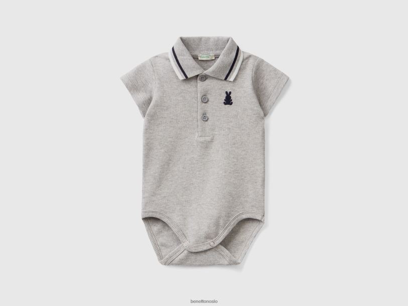 lysegrå Benetton barn bodysuit polo i økologisk bomull 20TRB5891