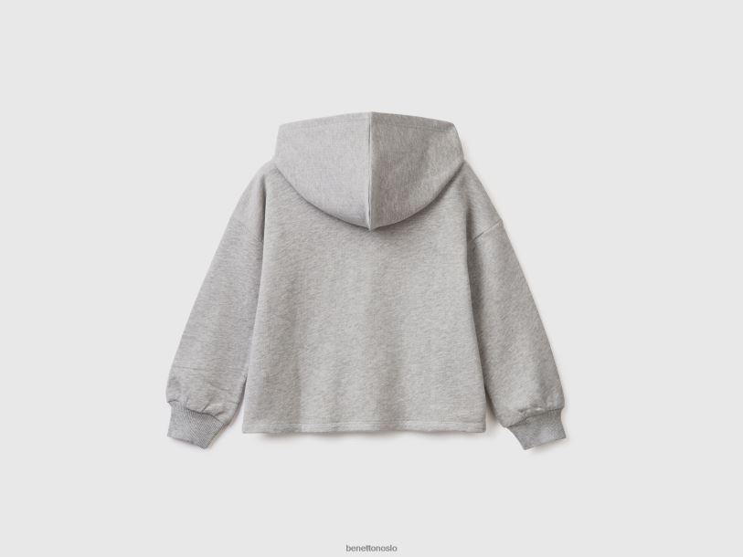 lysegrå Benetton barn cropped sweatshirt med hette 20TRB5331
