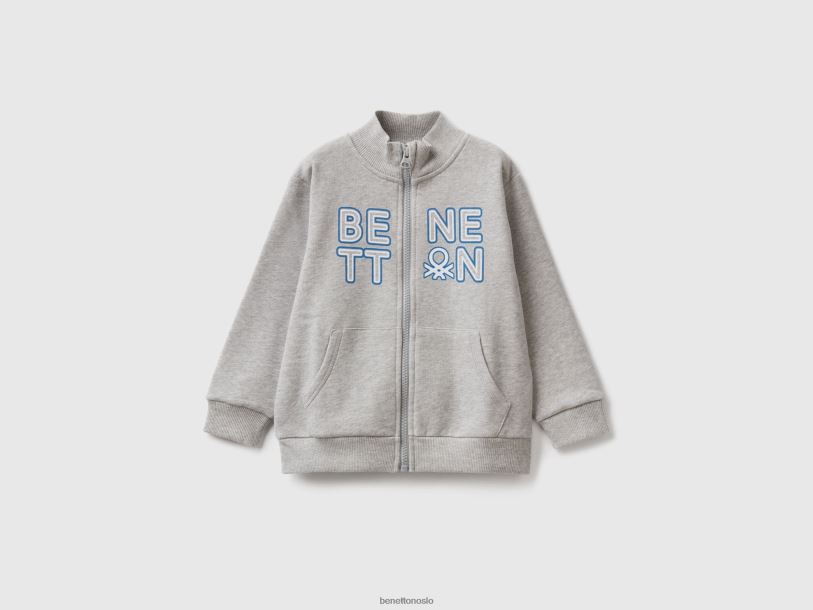 lysegrå Benetton barn genser i økologisk bomull med glidelås 20TRB5122
