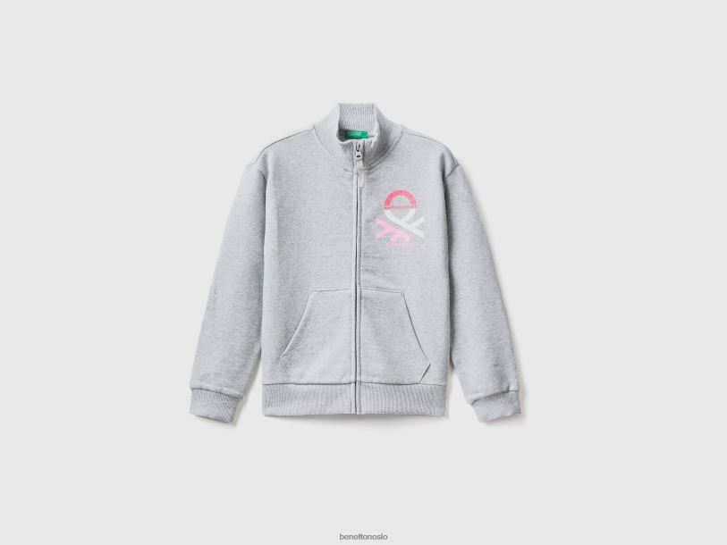 lysegrå Benetton barn genser med glidelås og krage 20TRB5328