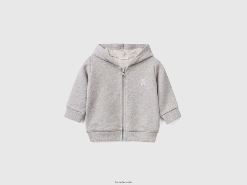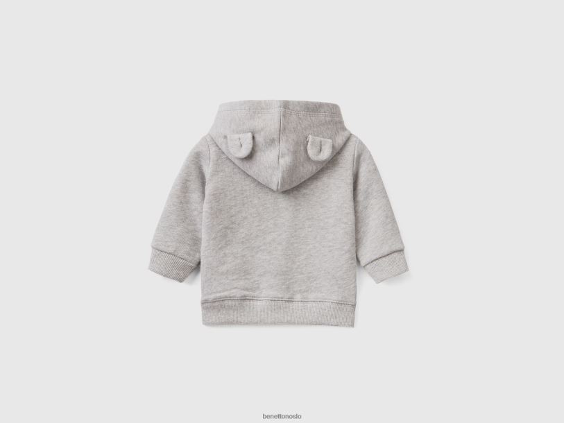 lysegrå Benetton barn genser med hette i økologisk bomull 20TRB5862