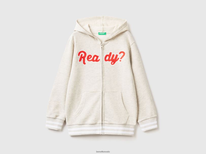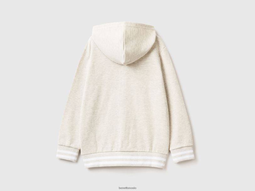 lysegrå Benetton barn hettegenser med glidelås og broderi 20TRB1840
