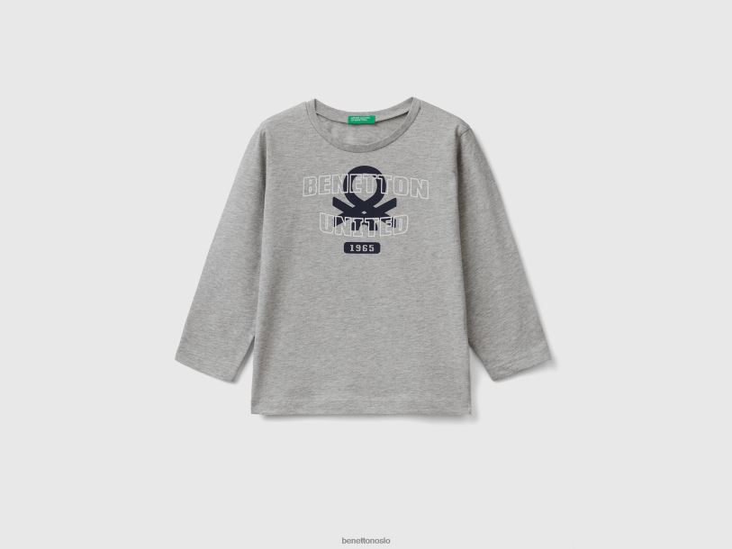 lysegrå Benetton barn langermet t-skjorte i økologisk bomull 20TRB2165