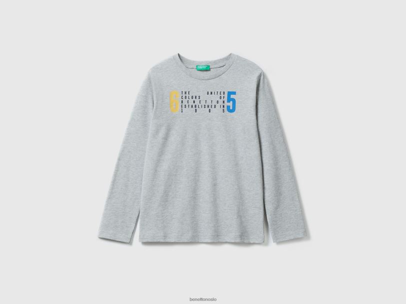 lysegrå Benetton barn langermet t-skjorte i økologisk bomull 20TRB4768