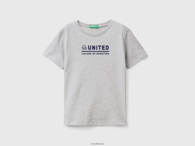 lysegrå Benetton barn T-skjorte i 100 % bomull med logo 20TRB2145